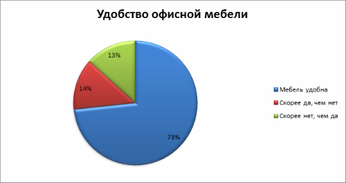 74% офисных работников оценивают мебель в офисе, в котором работают, как удобную.