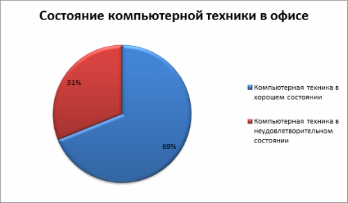69% оценивают состояние компьютерной техники в офисе как удовлетворительное.