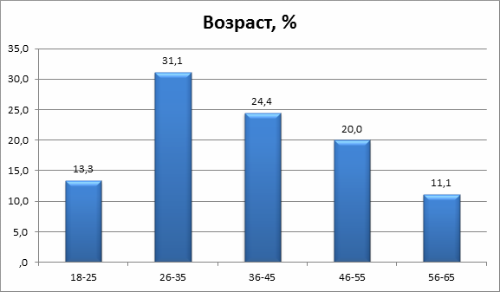 Большинство (31,1%) находятся в возрасте от 26 до 35 лет.