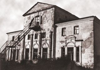| Большой зал в репьевском доме Толстых (фото начала XX века) |
