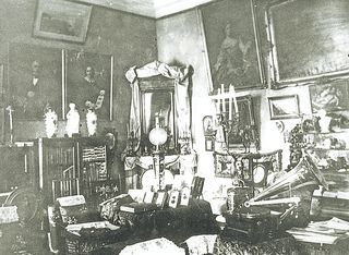 Из зала дверь вела в зимний сад, который был детищем хозяйки дома Анны Павловны. Там она разводила пальмы и разные виды тропических растений. Пол в этом месте дома был посыпан красным песком, стояли каменные резные креслица. Садоводы из Петербурга приезжали смотреть на ее диковинные рододендроны. В большой гостиной со старинной мебелью на стенах висели семейные портреты, картины с итальянскими пейзажами. Стояли шкафы-горки с разными редкостями, привезенными А.В. Толстым из путешествий и с археологических раскопок.