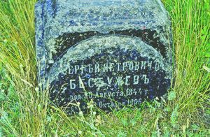 | Надгробный памятник С.П. Бестужеву в селе Репьевка Новоспасского района (фото 1998 года) |