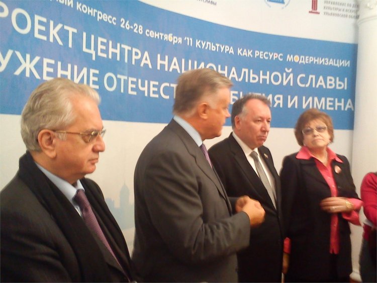Сегодня в рамках конгресса в зале заседаний Правительства Ульяновской области прошло заседание Попечительского Совета проекта Центра Национальной Славы «Служение Отечеству: события и имена». Заседание возглавил Председатель Попечительского Совета, президент ОАО «РЖД» Владимир Якунин, о проделанной работе в рамках проекта отчитались представители рабочей группы проекта Президент СПбГУ Людмила Вербицкая, Директор Государственного Эрмитажа Михаил Пиотровский, а также другие деятели науки и искусства и представители федеральных и региональных органов власти. После утверждения финансовых отчетов члены Совета ответили на вопросы журналистов.