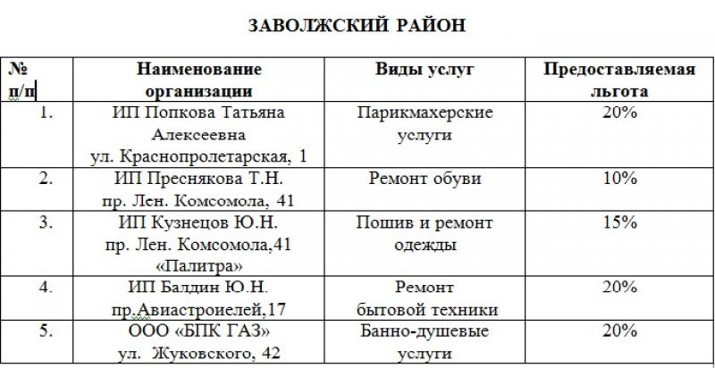По информации пресс-службы администрации Ульяновска, более 30 компаний, работающих в сфере бытовых услуг, предоставят людям с ограниченными возможностями скидки в размере от 10 до 50%. Это салоны красоты, фотосалоны, ателье, химчистки, а также компании, занимающиеся ремонтом обуви, часов и бытовой техники. Одна из парикмахерских даже пообещала инвалидам бесплатную стрижку.