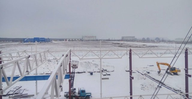 - Здание состоит из двух частей – производственной и административной. Общая площадь здания - более 14 тысяч квадратных метров, производственная часть – около 10 тысяч, разделена на две части. Для строительства используется более 1100 тонн металла, на сегодняшний день смонтировано порядка 570 тонн. Наружные сети выполнены в стопроцентном объеме, на подходе котельная и электрическая подстанция.