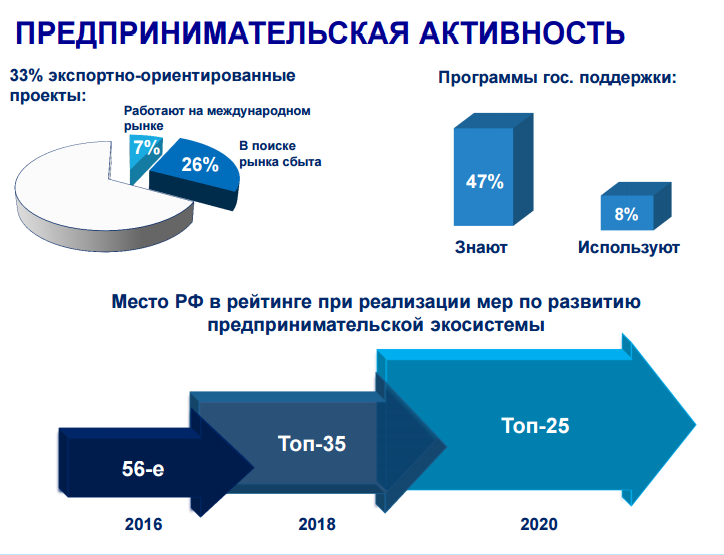 В первую, лидирующую группу вошли структуры, созданные в Санкт-Петербурге, Волгоградской, Тюменской и Кемеровской областях, Приморском и Красноярском краях, Башкортостане. Ульяновский комитет по развитию женского предпринимательства попал во вторую, самую многочисленную группу - со средней активностью. Комитеты Алтайского края и Омской области – в третьей, «пассивной» группе.