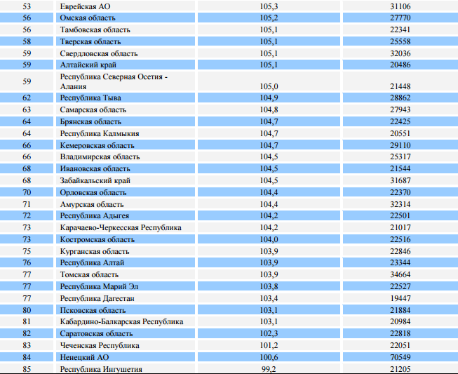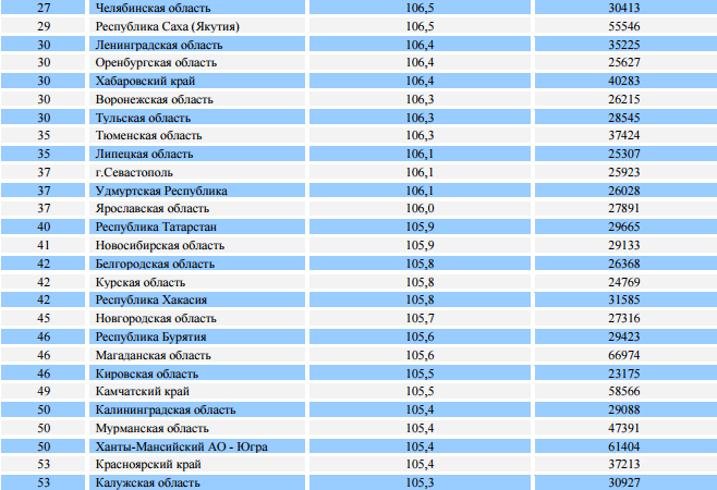 По размеру средней заработной платы Ульяновская область занимает девятое место в ПФО. Самый высокий уровень оплаты труда зафиксирован в Пермском крае (в среднем, 30,7 тыс. рублей) и Татарстане (30,4 тыс. рублей), самый низкий – в Чувашии (22,7 тыс. рублей).