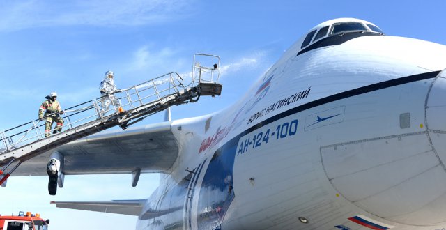 В аэропорту объявляется сигнал «Тревога», и начинается поисково-спасательная операция. С аэродрома вылетает дежурное поисково-спасательное ВС Ан-26 с парашютно-десантной группой на борту. Совершивший аварийную посадку Ан-124 находят на территории аэродрома. Спасатели, высадившись на место «крушения» самолета, оказывают доврачебную медицинскую помощь пострадавшим и эвакуируют их на безопасное расстояние.