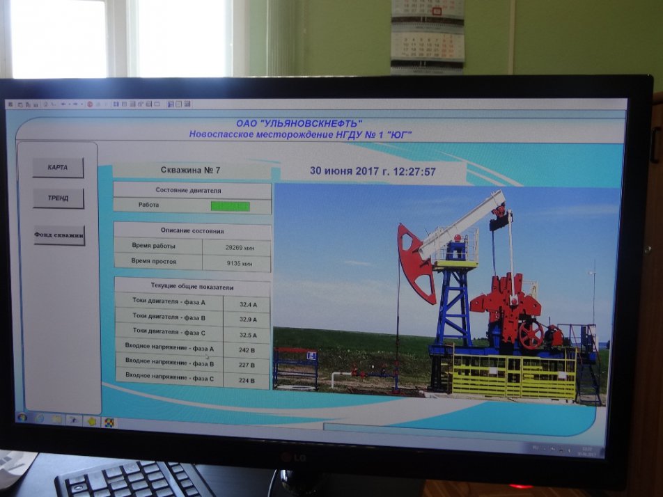 У станка-качалки есть блок управления с подключенным GSM-модемом от МегаФона, который собственно передает в ЦИТС всю необходимую информацию о параметрах работы скважины — токи, напряжение и т.д. За данными, которые передаются на экран компьютера, наблюдает диспетчер. Если что-то случится — можно оперативно среагировать.