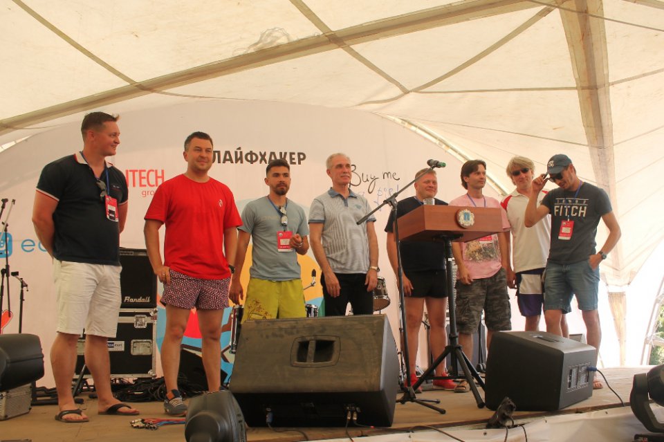 Берег залива усыпали палатки, здесь и там развевались флаги широко (и не очень) известных IT-компаний. Как и было обещано в анонсах к мероприятию, скучать не пришлось никому. Ресторанные бренды развернули кафе а-ля бистро. В спортивных зонах шло сражение за звание лучших волейболистов, футболистов, стрелков и байдарочников. «Ленинград» не уставал петь про очки Собчак. Правда, из колонок главной сцены… Зато «Маша и медведи» пели реальные, живые и настоящие.