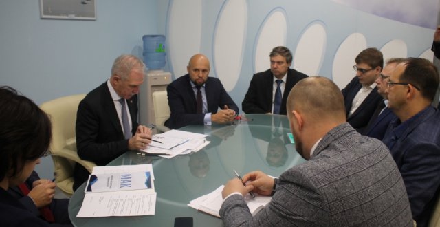 Генеральный директор АО «ПОЭЗ «Ульяновск» Денис Барышников представил главе региона Сергею Морозову концепцию проведения Международного авиатранспортного форума (МАТФ-2018).