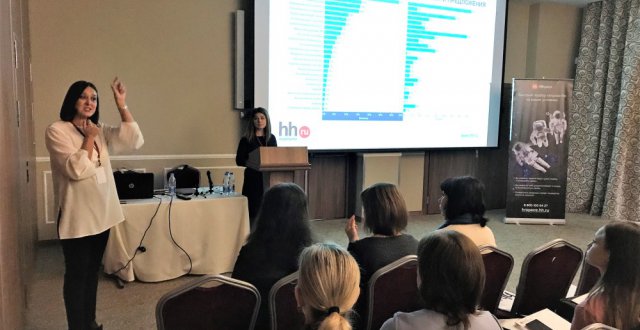 В этом году мероприятие проходило в двух частях. Открыли мастерскую руководитель направления продаж территории HeadHunter Альбина Султанова и ведущий менеджер по работе с клиентами Наиля Сафарова.