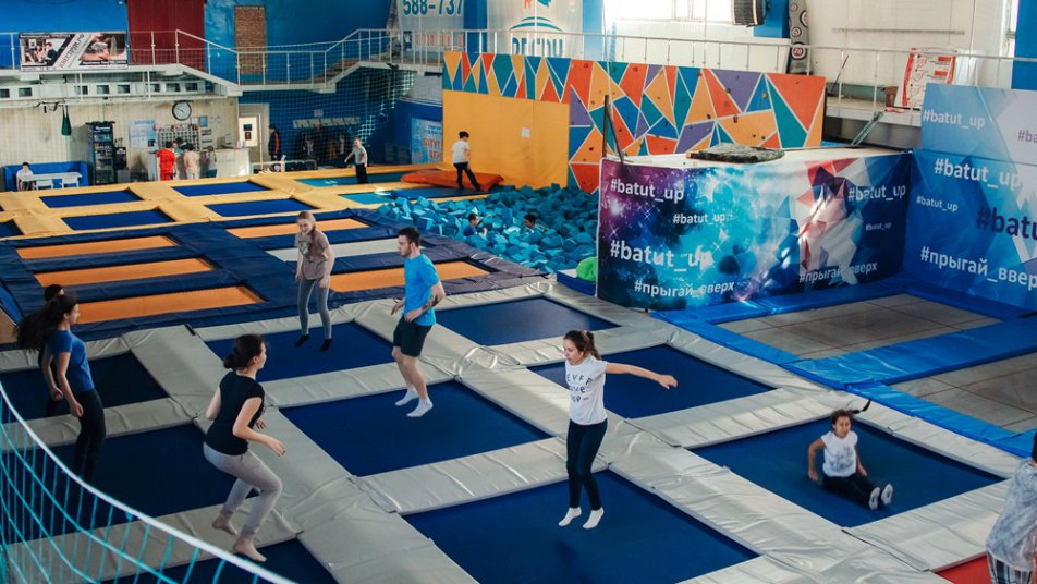 С пользой проводить досуг здесь могут дети, взрослые, профессиональные спортсмены и любители экстремальных видов спорта. С гостями работают профессиональные инструкторы, которые проводят разминку и обучают основным элементам, следят за тем, чтобы пребывание здесь было максимально безопасным. Помимо батутов, в зале есть скалодром и огромный поролоновый бассейн.
