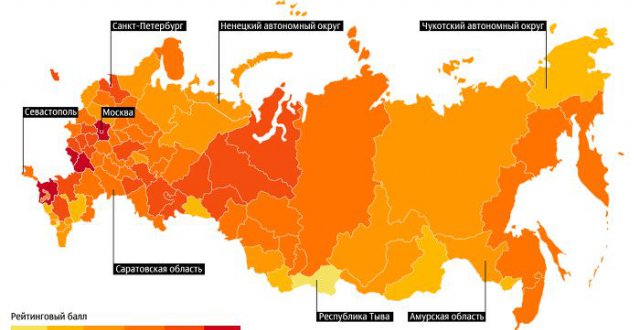 Первые позиции в рейтинге традиционно занимают Москва, Санкт-Петербург и Московская область, сводный рейтинговый балл которых превышает 70 (потенциально возможный минимум – 1, максимум – 100). За ними следуют Татарстан, Белгородская область, Краснодарский край, Воронежская область, Липецкая область, Ханты-Мансийский автономный округ – Югра и Калининградская область.