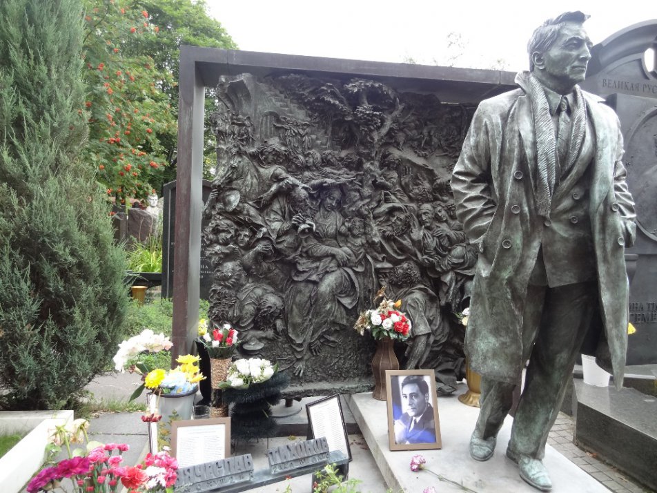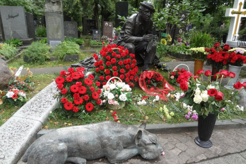 На некоторых погостах можно разглядеть фрагменты жизни и детали смерти «звезды». У Ии Савиной – кадры из ее фильмов, и главный – «Дама с собачкой». Со своими героями – молодогвардейцами – застыл в бронзе Александр Фадеев, а самый узнаваемый герой на барельефе писателя Алексея Толстого – Петр Первый. Целые сюжетные композиции венчают могилы легендарного теле-путешественника Юрия Сенкевича, журналиста Артема Боровика...