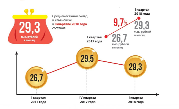 Инфографика: зарплата в Ульяновске в первом квартале 2018 года
