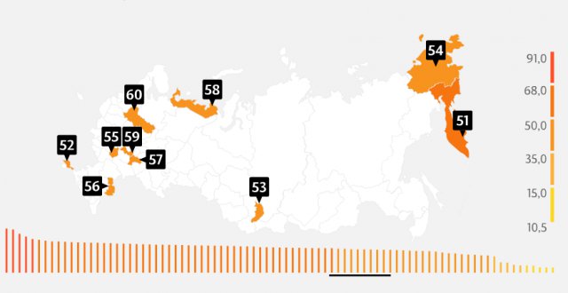 В 70-ти субъектах РФ за прошлый год индекс увеличился. Эксперты объясняют это позитивными изменениями на рынке труда. «Произошло снижение уровня безработицы, увеличились зарплаты, снизился коэффициент напряженности на рынке труда (отношение среднегодовой численности безработных к среднегодовому числу вакансий)», – комментирует РИА Рейтинг.
