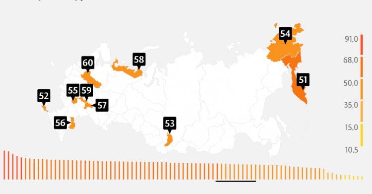 Аутсайдерами рейтинга стали Ингушетия, Тыва, Карачаево-Черкессия, Чечня, Алтай, Северная Осетия и Кабардино-Балкария.