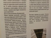 Часть работ, представленных на выставке, уже заняла свое место на страницах книги. Другая значительная часть фотографий в книгу не вошла, так как не относится к теме проекта, но изображает самобытные уголки необъятной страны.