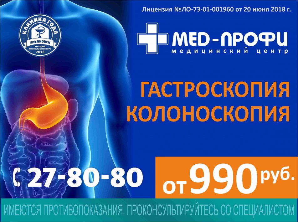 Если у вас болит желудок – самое время сделать эндоскопическое и ультразвуковое обследование в медицинском центре Мед-Профи по акционной цене и на новейшем оборудовании. Обследование можно сделать по адресу ул. Карла Маркса, 19.