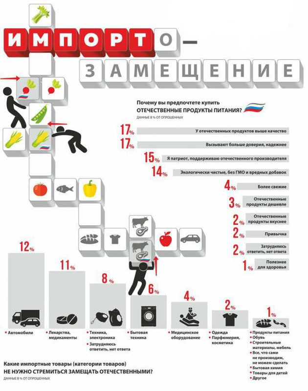 По данным фонда «Общественное мнение», россияне, предпочитающие отечественную продукцию, аргументируют свой выбор более высоким качеством и надежностью товаров, чувством патриотизма, экологической чистотой и дешевизной.