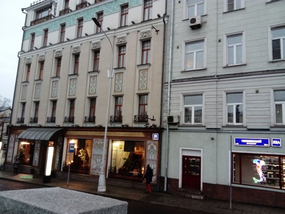А вот и та самая знаменитая скамейка, где сидела киношная парочка – напротив дома № 11. В начале XX века здесь был доходный дом. Вообще на Бульварном кольце, расположенном в историческом центре столицы, много красивых памятников архитектуры. Как, например, дом-музей Н. В. Гоголя на Никитском бульваре, соседствующим с Гоголевским.