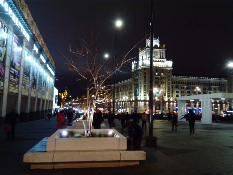 …На следующий за Никитским бульвар – Тверской – я зашла уже в сумерках, и это было замечательно: главная «жемчужина» Бульварного кольца озарилась необычной для провинции иллюминацией. Цвет огоньков на аллее то и дело менялся: вот кроны деревьев подсвечены синим, а вот уже красным, затем желтым, зеленым... Очень эффектное цветовое решение!
