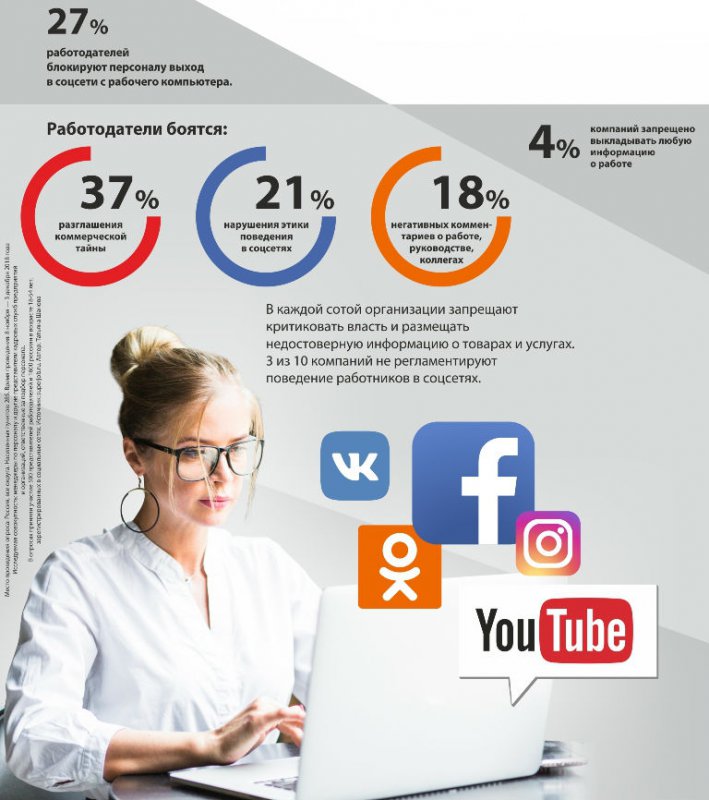 27% работодателей блокируют персоналу выход в соцсети с рабочего компьютера.