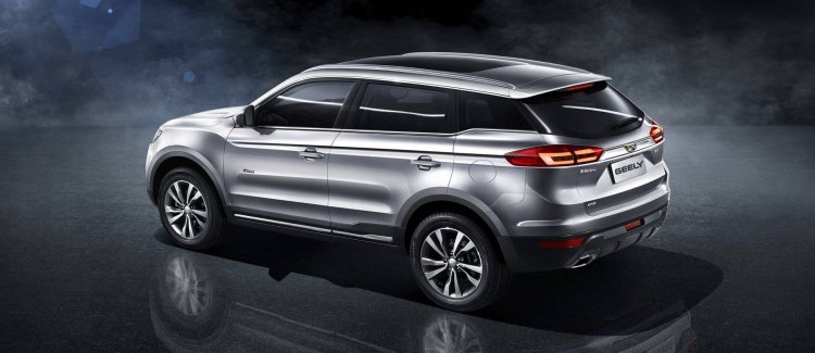 Кузов китайского паркетника обладает компактными фарами головного света (в максимальных комплектациях полностью светодиодные), аккуратной фальшрадиаторной решеткой с фирменной «паутиной» бренда Джили, стильным и оригинальным бампером со светодиодными противотуманками, динамичным профилем кузова с длинным капотом, ниспадающей к корме линией крыши, опирающейся в задней части на парящую стойку, большими боковыми дверями, солидными вырезами колесных арок и аккуратной кормой, образованной крышкой багажного отделения с харизматичными выштамповками, высоко расположенными светодиодными габаритными фонарями и поджарым бампером, дополненным яркой вставкой под металл и трапециевидными патрубками насадок выхлопных труб.