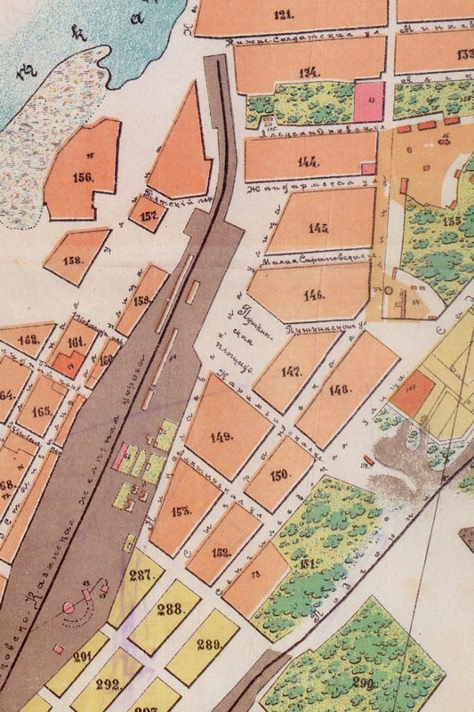 Ныне на этом месте жилые дома и перекресток улиц Пушкинской и Железнодорожной. Что же касается улицы, то она существует в городе с 1902 г. Имя поэта она получила в 1935 г.