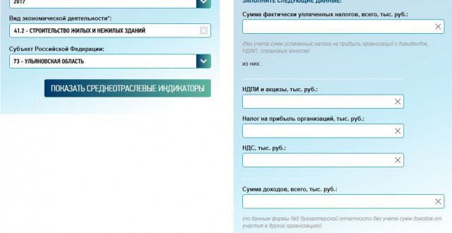 В калькуляторе есть сведения о средних налогах, зарплате, рассчитанной на основе справок по форме 2-НДФЛ, и отраслевых индикаторах рентабельности продаж.