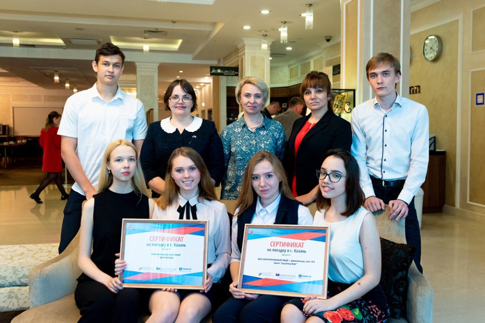 Коллективный подарок – сертификат на поездку в Казань – был вручен самым юным участникам праздника – ученикам многопрофильного лицея из Димитровграда, победителям 4-го сезона «Лиги школьного предпринимательства».