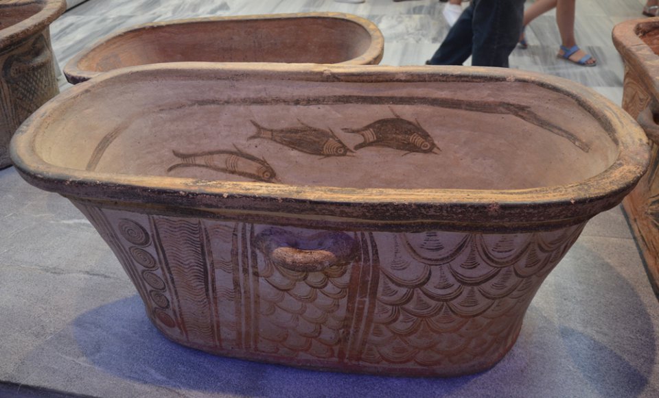 Но самое интересное в покоях царицы то, что слева от «комнаты с дельфинами» находится ванная комната. Там до сих пор стоит ванна из камня. Кносский дворец, по развалинам которого мы гуляем сегодня, существовал с 1700-х до 1450-х годов до нашей эры. И уже в это время слуги царицы не наполняли ее ванну водой вручную, ведрами. Во дворце была замечательная система как водоснабжения, так и водоотведения. Поразительно! К тому же множество небольших помещений этого огромного здания хорошо освещалось при помощи световых колодцев, а также проветривалось, поскольку по всему дворцу удалось построить эффективную систему воздуховодов.