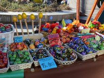 Широко раскинулся праздничный базар. Расписанные деревянные яйца. Куколки из шелухи кукурузы – тоже местная традиция. Сувениры, сувениры, сувениры… Даже пасхальные плётки – пожалуйста! Стоит такая «помлазка» около 25 крон – примерно 70 рублей.