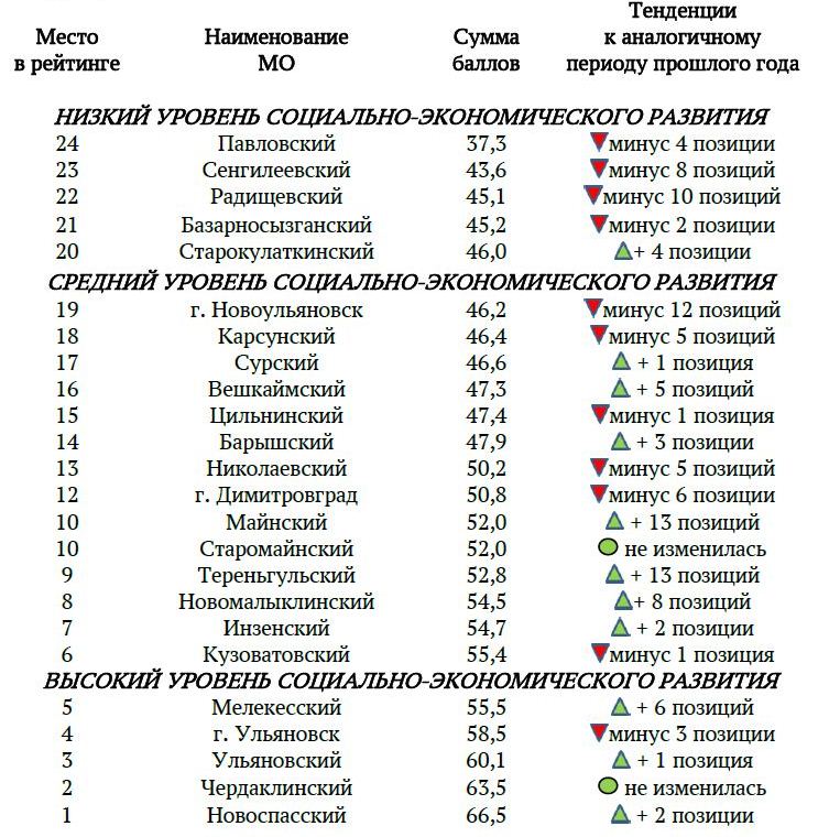 Рейтинг сформирован АНО «ЦСИ Ульяновской области» – по 25 показателям для городских округов и 28 показателям для муниципальных районов.