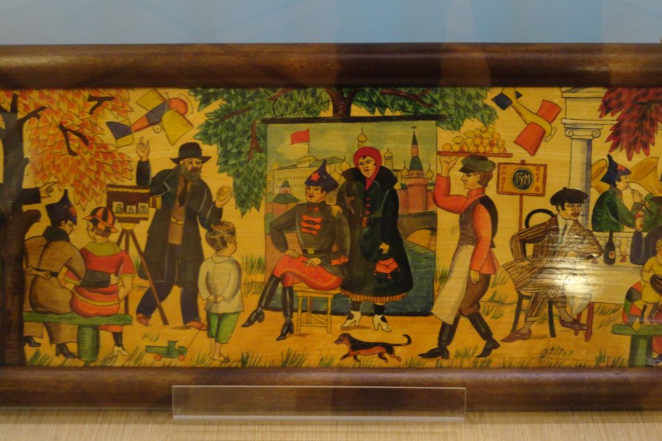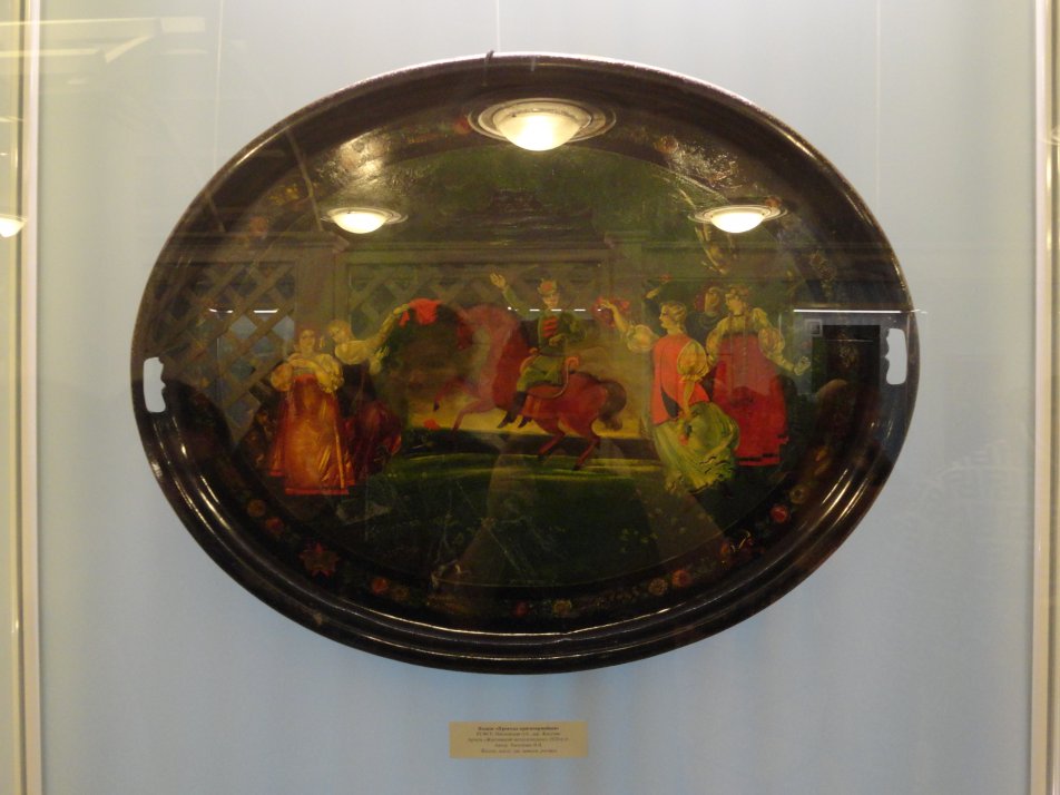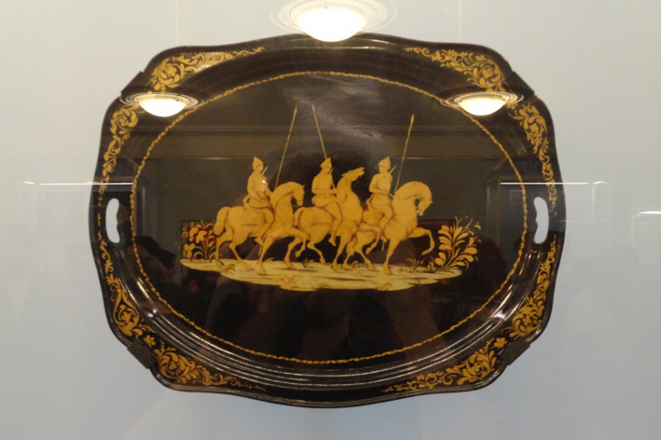 Особый интерес у посетителей выставки неизменно вызывает лаковая живопись мастеров-виртуозов XX века, продолжающих художественные традиции российских центров лакового промысла (Федоскино, Палех, Мстера и Холуй). Изделия впечатляют разнообразием сюжетов и функциональностью: коробочка со съемной крышкой «Индустриальный пейзаж», шкатулка «Кузнец», блокнот «Герб СССР» и пр.
