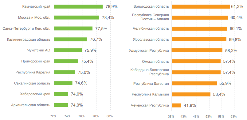 В среднем по стране эти показатели выше – 93,5% и 70,8% соответственно.