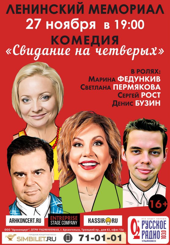 Порой неприятное знакомство открывает мир тайн. С вами такое случалось? Значит, вам будет интересна столичная постановка «Свидание на четверых», которую посмотрели уже более 120 тысяч россиян. И каждый раз зал взрывается смехом!