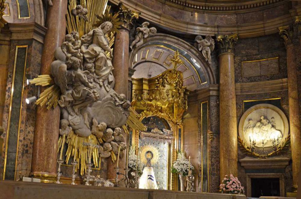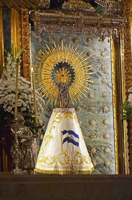 Деревянная статуэтка Мадонны с младенцем Иисусом, которая сейчас находится в соборе, изготовлена в XIV или XV веке. Высотой она 39 сантиметров и стоит по-прежнему на невысокой яшмовой колонне. По традиции, часть колонны закрыта красивой «юбочкой». Цвета и отделка этой «мантии» периодически меняются. Новое одеяние статуэтке готовят лучшие мастерицы Испании.