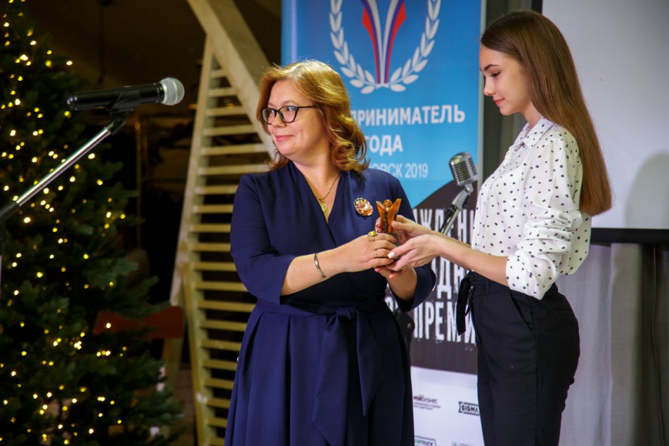 Лучшему предпринимателю в сфере образования Елене Филькиной награду вручала глава ульяновского Минобра Наталья Семенова, которая отметила, что «бизнес – это счастье самореализации». Руководителю сети языковых школ СМАРТ удалось выделиться среди конкурентов: в коллективе Филькиной работает много иностранцев, носителей языка, а в 2019 году Международный лагерь Smart Camp стал пилотом регионального проекта «Создание системы отдыха и оздоровления как инструмента социальных изменений в регионе».