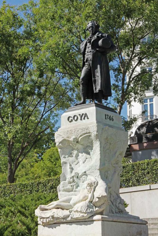 На площади Испании два небоскреба служат фоном для пафосного памятника Мигелю де Сервантесу Сааведра (1929 год). На вершине обелиска четыре фигуры поддерживают земной шар. Это символизирует широкое распространение испанского языка на планете: он занимает второе место в мире после китайского, на испанском говорят 460 млн человек. У подножия обелиска – сидящий в кресле Сервантес. Перед писателем – его герои, Дон-Кихот и Санчо Панса. Есть бассейн, в котором отражаются фигуры, красивый фонтан с обратной стороны монумента, а также изваяния Дульсинеи и царственных особ… Словом, сделано с истинно мадридским размахом!