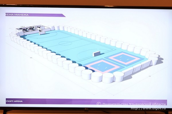По информации пресс-службы правительства Ульяновской области, новый спортивный объект будет представлять собой пневматический арочный отапливаемый ангар с футбольным полем с искусственным покрытием, а также минифутбольное поле и площадку для занятий волейболом и баскетболом.