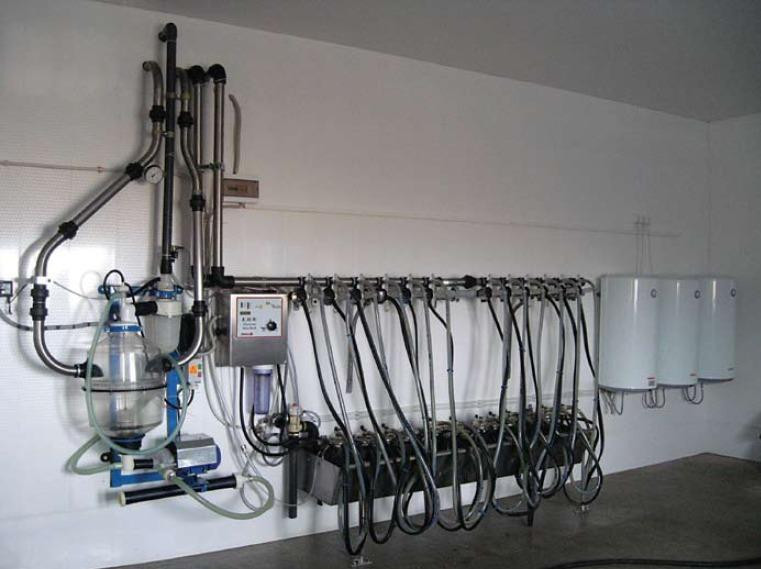 Такой агрегат, к примеру, как доильная установка «Елочка» от ООО «Дакар», имеет несколько режимов дойки, которые настраивает оператор. Система является станочной, что обеспечивает индивидуальность доения каждой особи. Молоко фильтруется и по молокопроводу поступает в молокоприемник, затем в танк-охладитель. И молокопроводы, и охладители молока различных типов также есть в ассортименте предприятия.