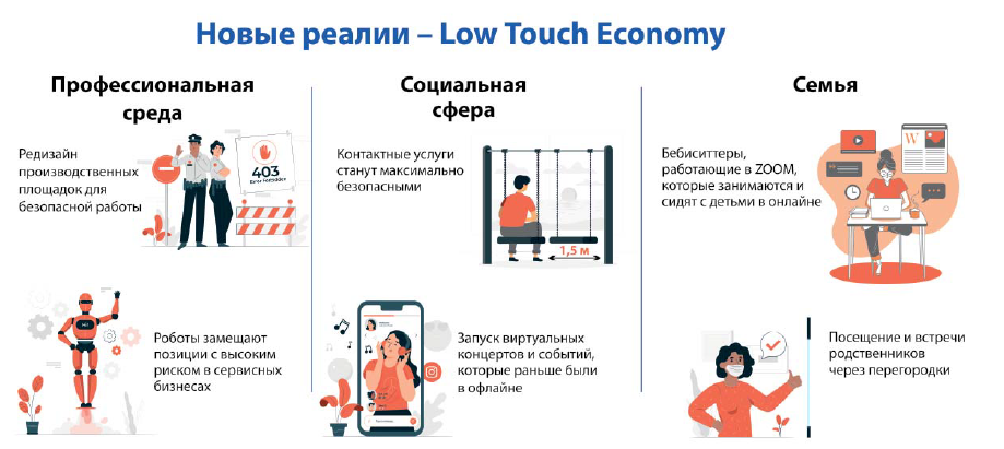 Для того чтобы эффективно продвигать свои товары, компаниям необходимо максимально контактировать с клиентом, присутствовать на всех площадках, где он «обитает» («Авито», соцсети и т.д.). Продолжит свое развитие Low Touch Economy (малоконтактная экономика).