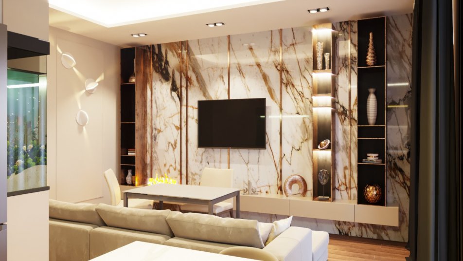 Работаю со всеми материалами. Каждый хорош по-своему. Главное, чтобы он не был случайным выбором, а прочно интегрировался в интерьер и раскрывал потенциал помещения.