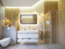 Сейчас это различные скрытые подсветки-сценарии освещения, сочетание разнообразных поверхностей: бетон, дерево, стекло, камень в отделке и декоре помещения.