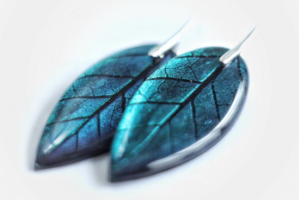 Свой стиль я искала года три. В украшениях нет границ – можно делать что угодно. А потом родились листочки. Это не что-то уникальное – ты просто используешь то, что дала нам природа. Я начала выпускать листочки разных цветов, размеров, вариантов. Брала живые растения, делала оттиски в полимерной глине, заливала ювелирной смолой. По сути теперь это моя «визитная карточка».