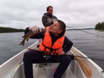 Я рассчитывал на жизнь в формате «что найдем, то и съедим» – в лесу было очень много черники, грибов. Плюс главной целью нашей поездки была рыбалка. Но друзья, как настоящие москвичи, подготовились основательно: купили для путешествия новый джип, прицеп, лодку, взяли с собой огромное количество еды. Лодка дала нам независимость – с ее помощью можно было преодолевать большие расстояния, бывать в очень живописных местах. Топозеро очень чистое, из него можно было пить воду.