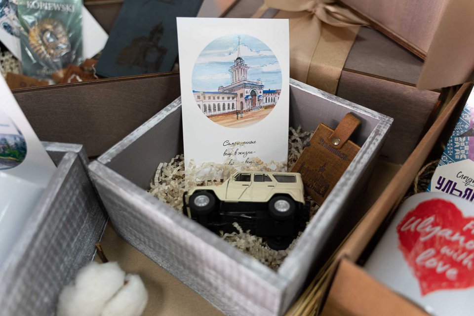 А две ульяновские мастерицы – Екатерина Царапкина и Юлия Дубровина – продвигают бренд «Привет из Ульяновска». Это сувенирные боксы с небанальными подарками – авторскими открытками, кружками, изделиями из натуральной кожи, украшениями из симбирцита и на авиационную тематику (например, милые браслеты с самолетом), модели УАЗиков…