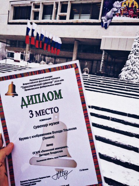 Два года назад сувенир, изготовленный в нашей типографии, – кружка с изображением Владимира Ульянова (Ленина) от Ленинского мемориала, – вышел в финал всероссийского фестиваля-конкурса «Туристический сувенир» и занял третье место в номинации «Сувенир музея» в средней ценовой категории. Это стало приятным событием для нас.
